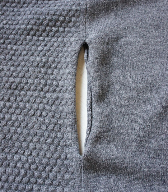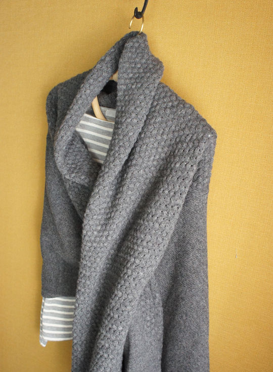 セールでもないのに買おうと思ったポイントは、手を突っ込む穴があるのと、半分ずつ違う編み方がされてたところ。