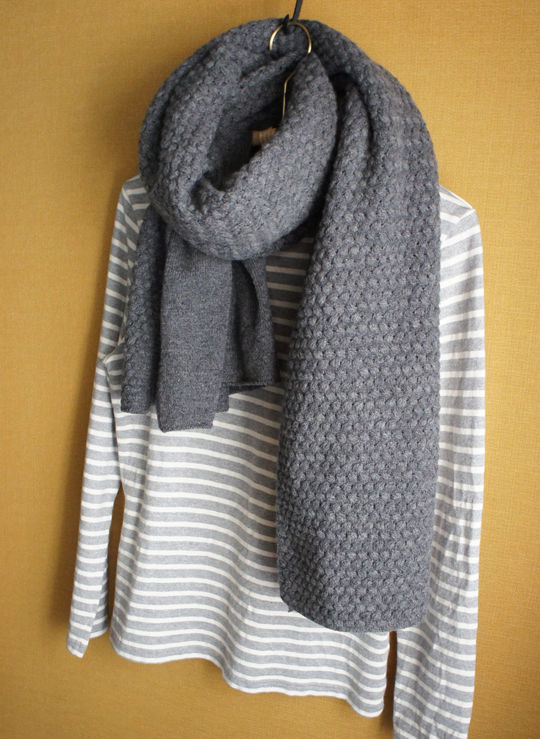 編み方が切り替わるせいか、グレーの単色でものっぺりしないとこが気に入りました。