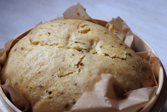 はじめて作るくせに、6cmのカップケーキ型12個分のレシピを無視して、18cmのせいろで作成。型に対して量が多かったのか、中心がなかなか蒸されず困ったものの、そこそこふんわり仕上がりました。