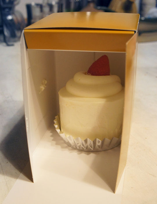 そしてかわいいだけでなく、スポンジ生地がふわふわで味もいい。直径7cmくらいで、なかなか大きいけど、軽い食感でさらりと食べられます。