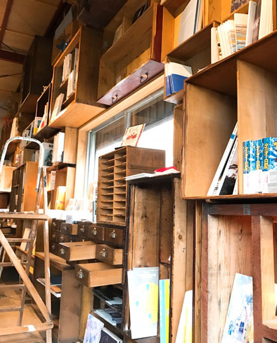 多くの松本の有名店は、中町通り、縄手通りという観光の中心的なエリアにあるけど、栞日は草間弥生作品の収蔵で有名な、松本市立美術館の近くにあります。美術館ついでに立ち寄るといい感じ。