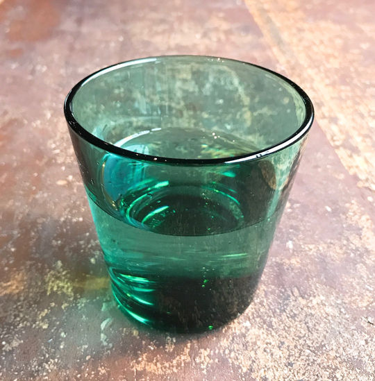水は普通の店だとクリアなグラスで提供されることが多いので、色付きグラスは新鮮で好印象でした。