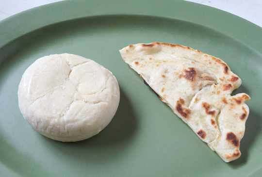 手で適当に薄くのばして焼くと、ナンっぽい物体ができます。