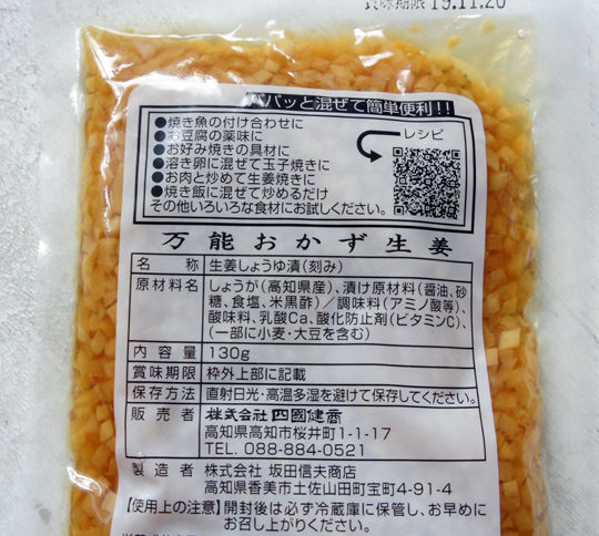 テレビで紹介されたのをきっかけに知った、万能おかず生姜。その後銀座へ行く機会があり、高知の物産館で購入しました。