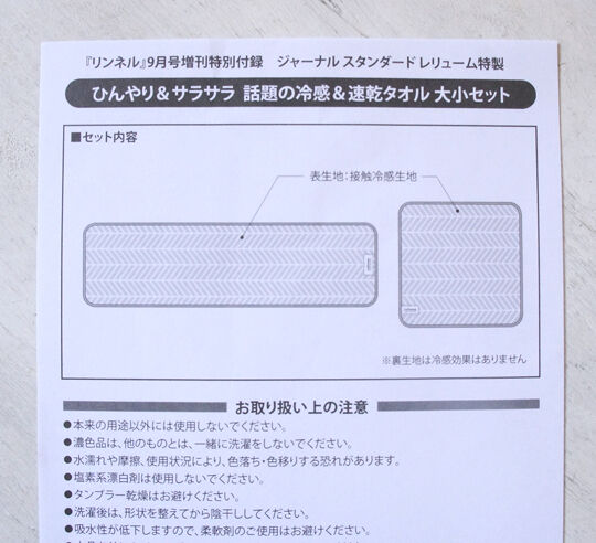 付録のタオル欲しさに、雑誌リンネルを購入しました。首に巻ける細長いタイプとハンカチサイズの2枚入りで、色柄が好みだったので。