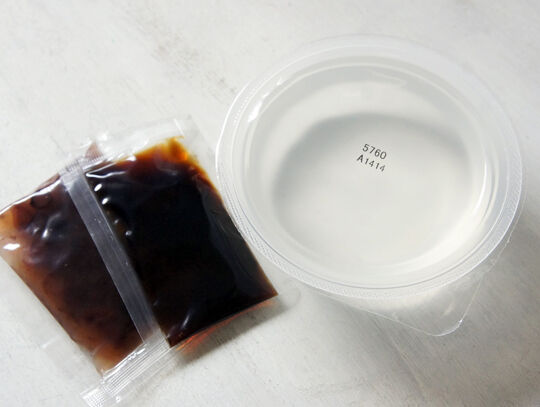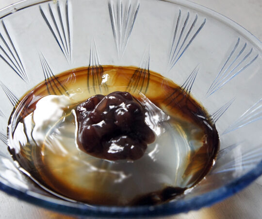 ケースを逆さにして寒天を一気に投入しましたが、本当はスプーンで少しずつすくって盛りつけたものに、餡やみつをかけるのが正解のようです。まあ味に影響はないでしょうが。