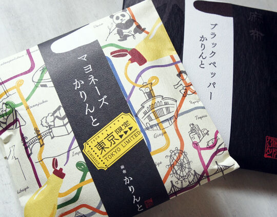 いろんなバリエーションのかりんとうと、かわいいパッケージが魅力の麻布かりんとでは2種類購入。