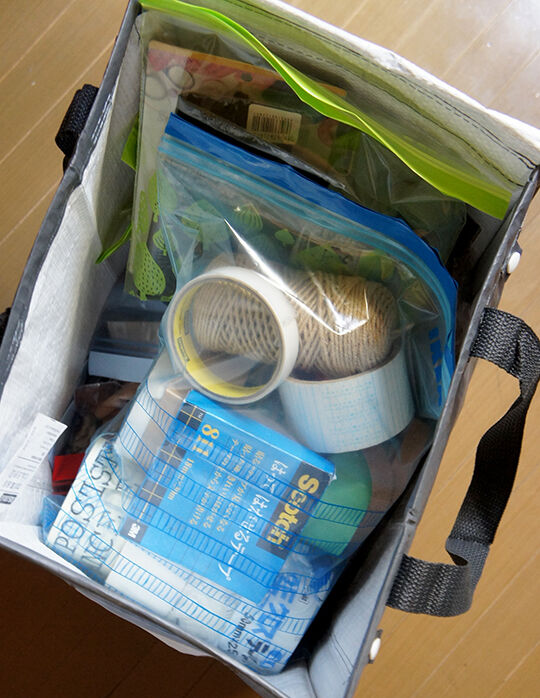 ペンチとかテープとか、ジャンル別にIKEAのフリーザーバッグに入れ、適当にDIMPAに放り込みました。