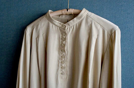 いつもシャツを買うときはマオカラーを選んでしまう。襟が折れるのを気にしなくていいからラクなんですよね。