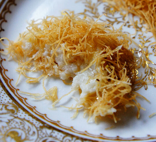細いパリパリした麺に中はチーズという、ちょっと不思議なスイーツ。