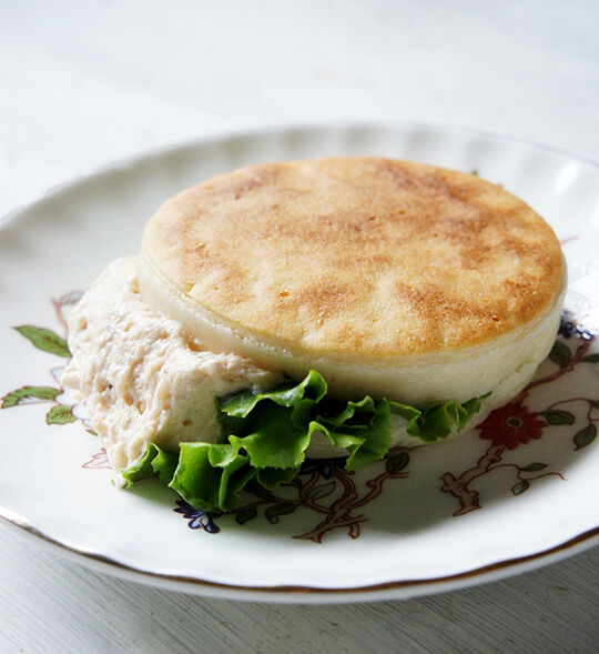 サーモンクリームチーズを挟んだクランペット。