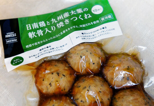 最近成城石井の売り場で目立つところに置かれている「日南鶏と九州産大葉の軟骨入り焼きつくね」という商品。