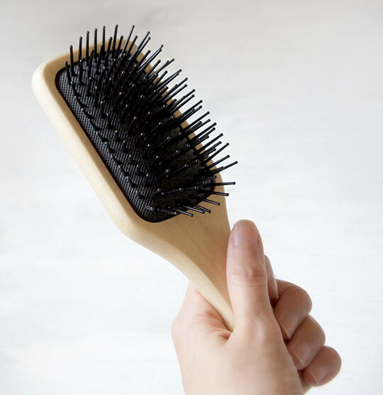 この形状のブラシはよく売られているけれど、必ずしもパドルブラシとは限らないのでパドルブラシと書かれているかチェックして購入した方がよさそう。小さいサイズは特に、たまたま似た形状の単なるブラシも多い。