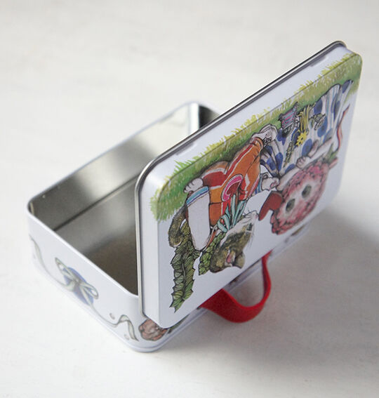 ローソンで見かけて、あまりのかわいらしさに購入したトランク型の缶。ヒグチユウコとローソンのコラボで、昔人気で売り切れたものの再販らしい。大手町のナチュラルローソンで普通に棚にたくさんあったから、そんな貴重なものとは知らなかった。でも人気で売り切れるのも納得のかわいらしさ。