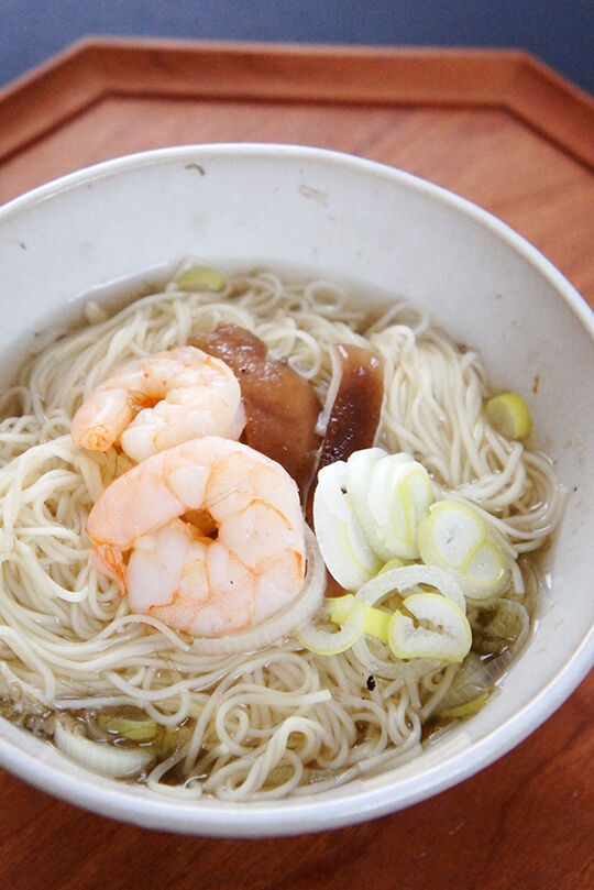 パッケージの説明通り沸騰した湯で3分ゆで、適当な汁と具材を合わせて食べた。細麺であっさりして食べやすい。軽く食べたい時によい感じ。